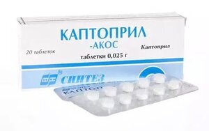 Действующее вещество: каптоприл — 25 мг или 50 мг (в пересчете на сухое вещество).